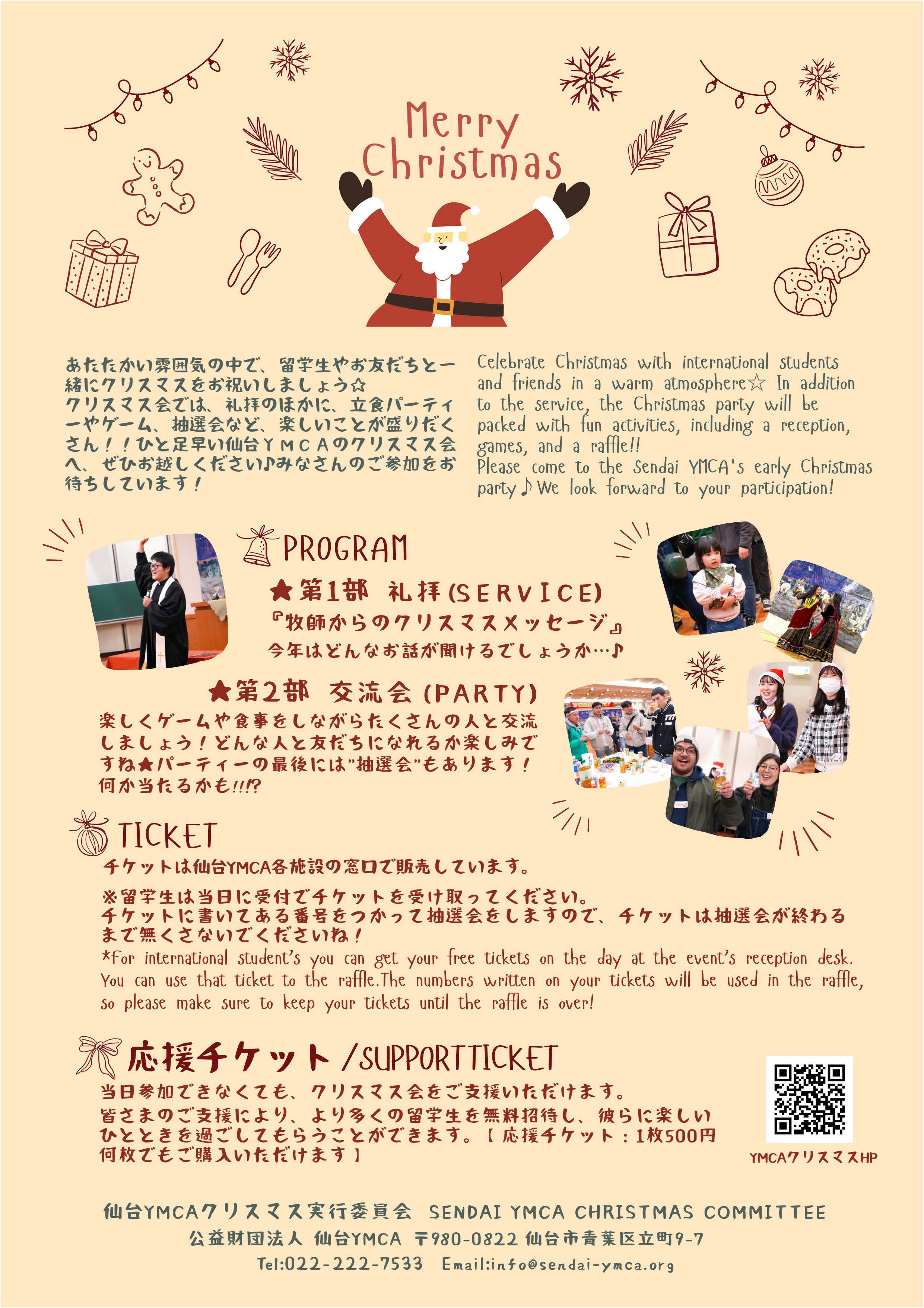 今年で54回目となるクリスマス会は、国に帰らず仙台でクリスマスを過ごす留学生と一緒にクリスマスパーティをしましょう♪というイベントです☺